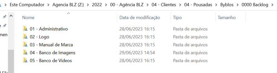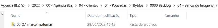 É possível encontrar na rede as subpastas “Banco de Imagens” e “Banco de vídeos”, na pasta Backlog de cada empreendimento: