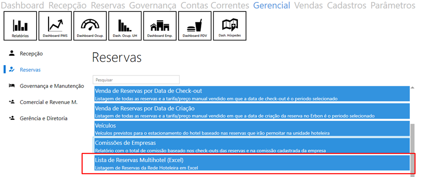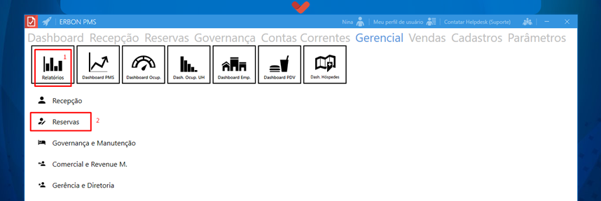 Escolha a aba “Relatórios” e, após sua abertura, clique na opção “Reservas”.
