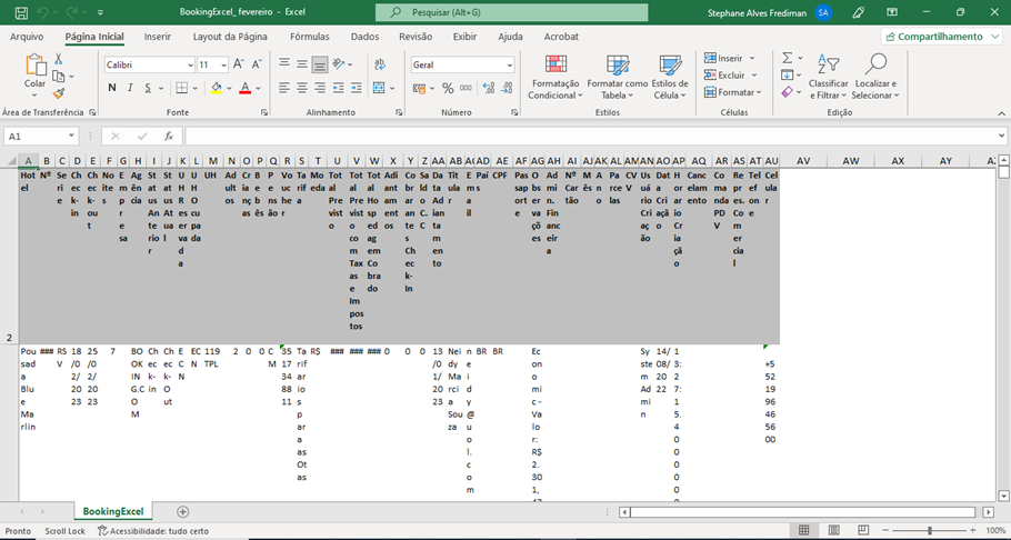 Com o relatório baixado, é necessário abrir e fazer uma pequena organização nos itens que são baixados em colunas muito estreitas e impossibilitam a visualização.