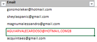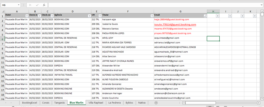 É necessário também fazer uma validação visual para contar que não houveram erros de digitação, e-mails fictícios ou mesmo enxergar novos padrões de e-mail de novas agencias e OTAs que possam surgir.