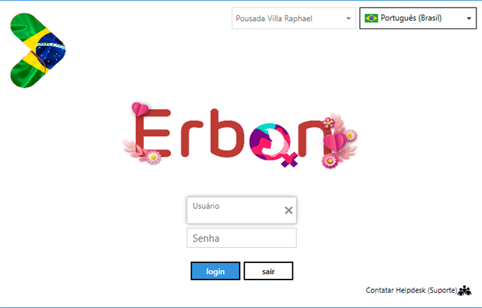Ao abri o Erbon, irá aparecer no canto superior da tela um menu com opções de acesso.
