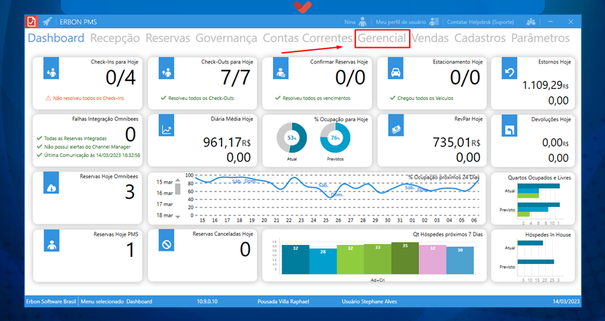 Você será levado para o Dashboard com informações gerais. Escolha a opção “Gerencial”.