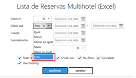 Escolha a opção de check-out “entre” e coloque a data do procura em questão.